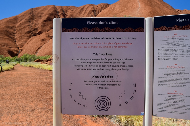 Et bien, le marketing aussie s’avère diablement efficace ! Jusque récemment, on pouvait encore trouver des boutiques de souvenirs à Alice Springs vendant des T-shirts ventant fièrement que le propriétaire avait effectué l’ascension du rock ! Pour le backpacker moyen qui a lu les brochures de Tourism Australia encourageant l’Uluru Climb de façon explicite, l’escalade d’Uluru/Ayers Rock est un véritable but en soi. Et lorsqu’il décide d’effectuer un voyage très onéreux pour se rendre au milieu de nulle part et découvre finalement sur place que la pratique est mal vue, changer ses plans s’avère difficile… Énormément de visiteurs considèrent d’ailleurs que l’escalade d’Uluru/Ayers Rock fait partie des choses qu’il faut absolument faire quand on visite l’Australie…
