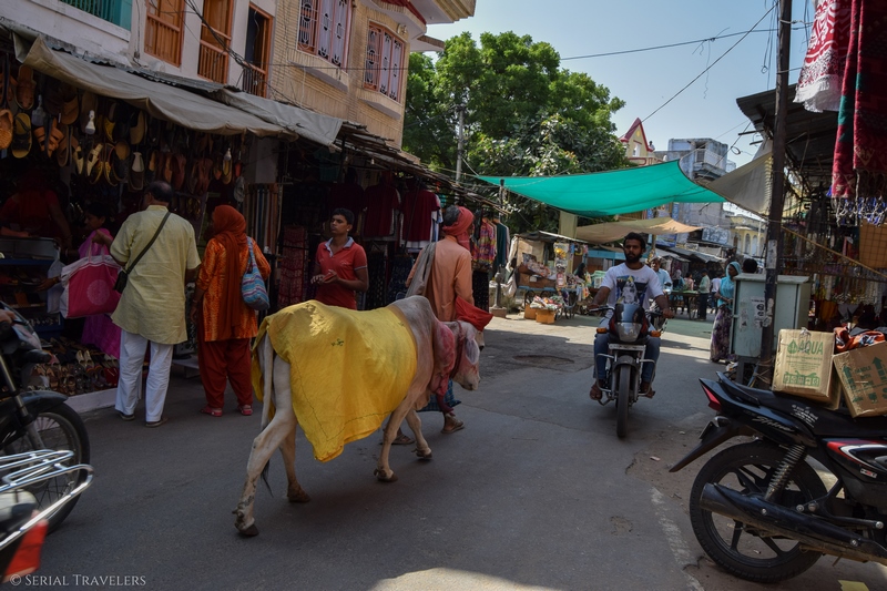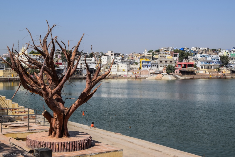Effectivement, Pushkar, également appelée la ville blanche, est une ville sacrée pour les hindous. D’une part, le lac est sacré et d’autre part, plus de 400 temples sont érigés dans cette ville de 15 000 habitants. Pour les hindous, un pèlerinage réalisé à Pushkar vaut plus de 100 autres ailleurs en Inde. Pour un touriste lambda, la ville ne semble pas présenter de grand intérêt aux premiers abords, on est surtout là pour la détente.
