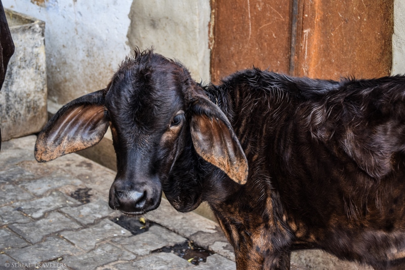Nous nous perdons dans le dédale des ruelles sans appréhension et sans réaliser que nous sommes en train de déambuler dans le quartier en question (peut-être trop occupés à photographier les petits veaux que nous croisons dans la rue). Il n’y a donc, selon nous, pas plus de risque qu’ailleurs à Ajmer ! Nous irons même manger à Jannat, un restaurant / hôtel qui nous sert de très bons chicken fried rice et chicken biryani, situé en plein cœur de Dargah bazar !