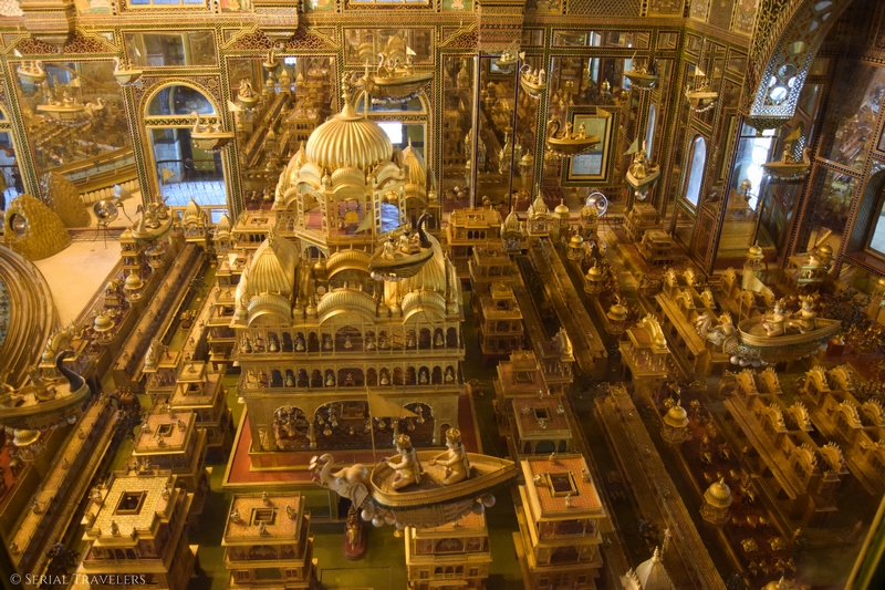 C’est la première fois que nous visitons un temple de la religion jaïn et il est tout simplement incroyable ! Si l’extérieur n’est pas exceptionnel, l’intérieur abrite une ville miniature entièrement dorée, censée être une représentation d’Ayodhya, ville sacrée pour les hindous et les jaïns.