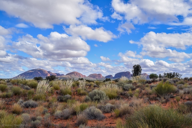 Les dômes de Kata Tjuta, qu’on appelle aussi Monts Olgas, sont situés dans le parc national d’Uluru – Kata Tjuta, à une distance de 450 km d’Alice Springs, la première grande ville du désert, dans le Northern Territory. Les Olgas se trouvent également à une cinquantaine de kilomètres de Yulara et une petite soixantaine de kilomètres du célèbre monolithe d’Uluru. Et oui, 60 kilomètres, ce n’est vraiment pas grand chose compte-tenu des énormes distances dans l’immensité du désert australien 🙂