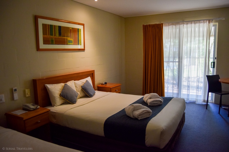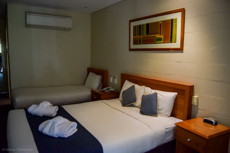 - Complexe hôtelier Outback Pioneer Hotel & Lodge : à partir de 220 AUD/nuit (~145,55 €) avec une réservation de 3 nuits, pour une chambre standard avec salle de bain privative, la climatisation, une télévision et une connexion WiFi fonctionnelle dans la chambre. Le plus : pour ce prix, le petit déjeuner (buffet à 38 AUD/pers., soit ~25,15 €) est inclus dans le prix de la chambre 🙂
