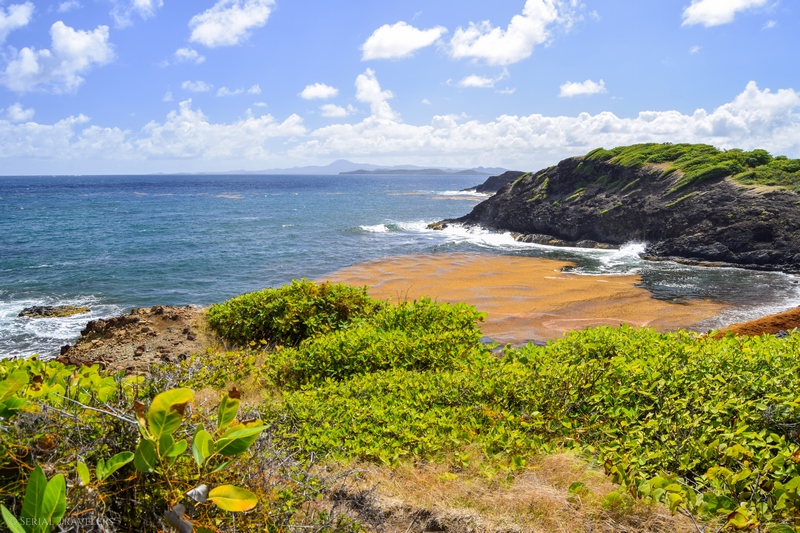 Cette partie du sentier, entre l’Anse Bénitier et l’Anse Bois Vert, est sûrement la partie la plus belle de la randonnée, et la plus inattendue également, pour un paysage martiniquais ! En effet, la côte très découpée est battue par les vents, n’autorisant comme végétation que les buissons bas ! En outre, c’est cette partie qui ressemble le plus aux paysages de Bretagne !