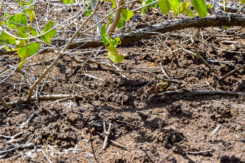 Après la mangrove, nous tomberons sur une superbe crique et des petites plages de sable blanc bordées de palétuviers, donnant sur les eaux claires et limpides de la baie du Trésor. Cette baie, protégée des grandes houles de l’Atlantique, offre des eaux particulièrement calmes et tout à fait indiquées pour la baignade. D’ailleurs, nous croiserons plusieurs baigneurs, bien que nous soyons éloignés du weekend ! En repartant de la plage, nous aurons la chance de tomber sur une mangouste, beaucoup trop rapide pour être immortalisée par notre appareil photo.