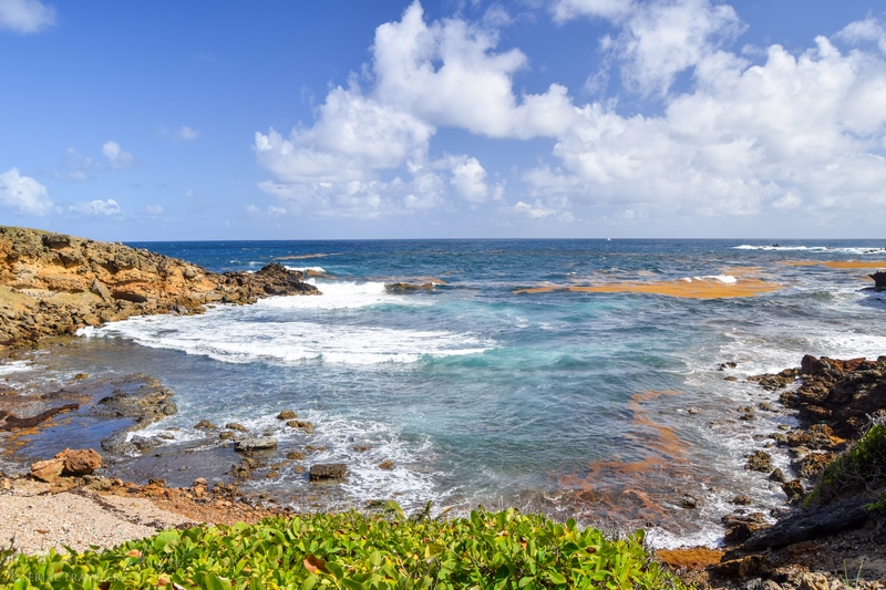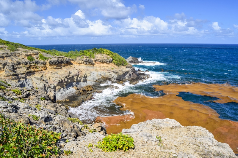 L’îlet Trésor est une île située à l’extrémité orientale de la presqu’île de la Caravelle, caractérisée par une végétation basse, sous forme de buissons, couchés par le vent. C’est à partir de ce point que la côte n’est plus protégée des assauts de l’océan et que l’on trouvera nos premiers bancs d’algues sargasses, véritable fléau qui touche toutes les îles des Caraïbes. En effet, les algues qui pullulent en mer à cause de la pollution, viennent ensuite s’échouer sur les plages, et finissent par pourrir dans une odeur pestilentielle…