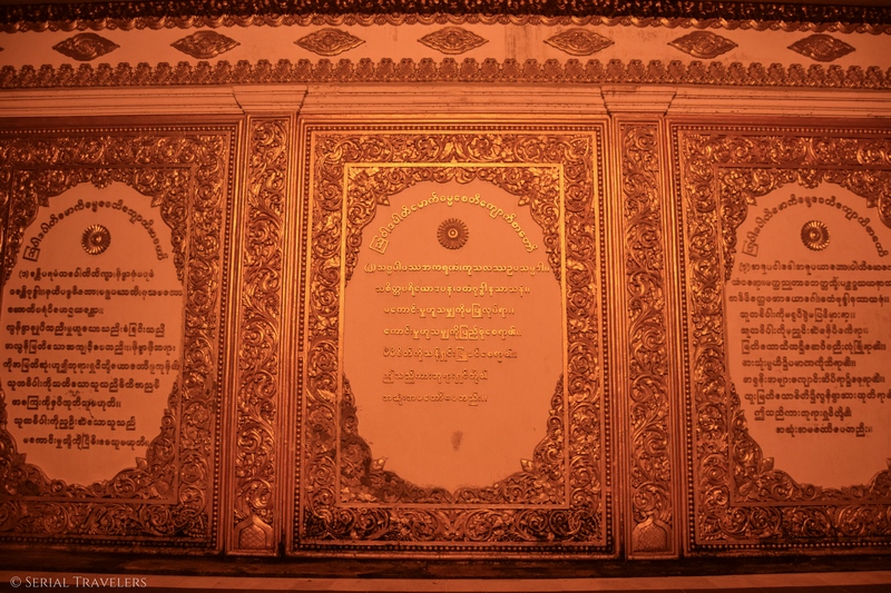 Une forêt de 64 pagodons entourent la pagode principale, avec quatre temples situés aux points cardinaux. Près de 1500 clochettes d’or et d’argent sont accrochées sur l’ombrelle en haut de la pagode. C’est bien trop haut pour pouvoir s’en rendre compte mais il y aurait également des milliers de diamants !