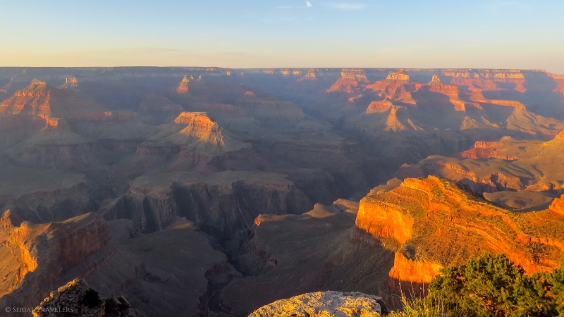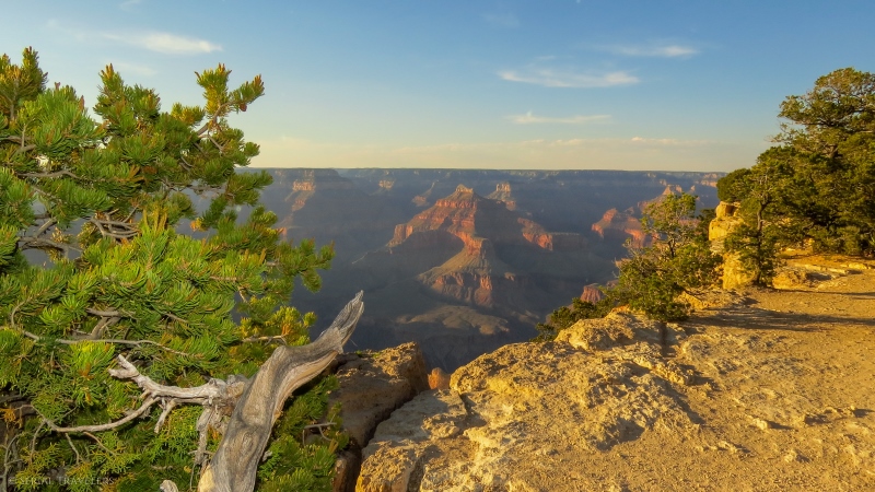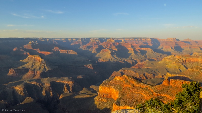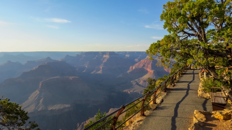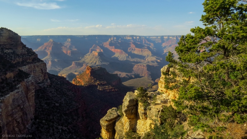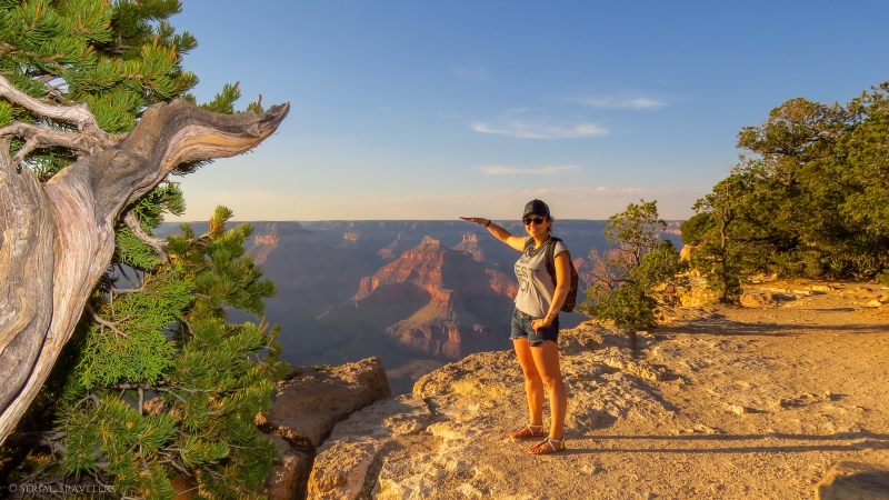 Nous atteindrons Tusayan, le village le plus proche du Grand Canyon vers 17H30. Une demi heure plus tard, nous arrivons tout sourires au niveau de l’entrée du parc où nous pourrons acheter notre pass America The Beautiful 🙂 Nous filerons nous garer au niveau de Grand Canyon Village avant d’avoir notre premier Waaaaoooooohhhh du roatrip à la première vue sur le Grand Canyon !