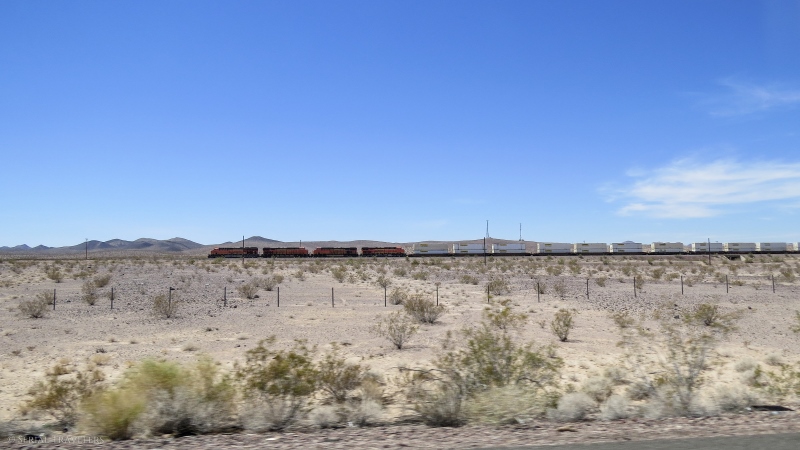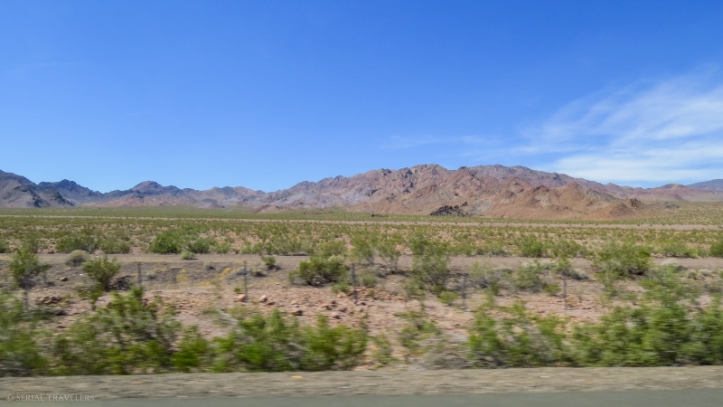 Moins de deux heures de route plus tard sur l’interstate I-40E, nous atteignons la ville de Needles, après avoir longé le désert des Mojaves qui présente de très beaux paysages et notamment des arbres de Joshua. Le désert des Mojaves (ou Mohaves, en référence au peuple amérindien du même nom) est une étendue désertique de 40 000 km² s’étendant en grande partie sur la Californie, l’Arizona ainsi que le Nevada. Death Valley National Park (ou vallée de la Mort) est ainsi une vallée faisant partie intégrante du désert des Mojaves !