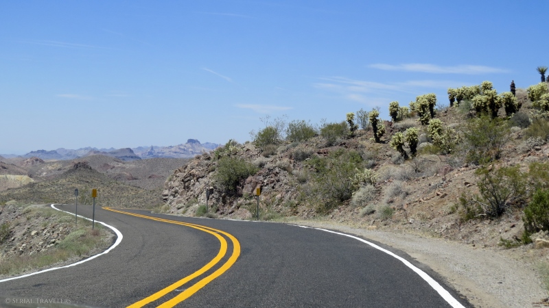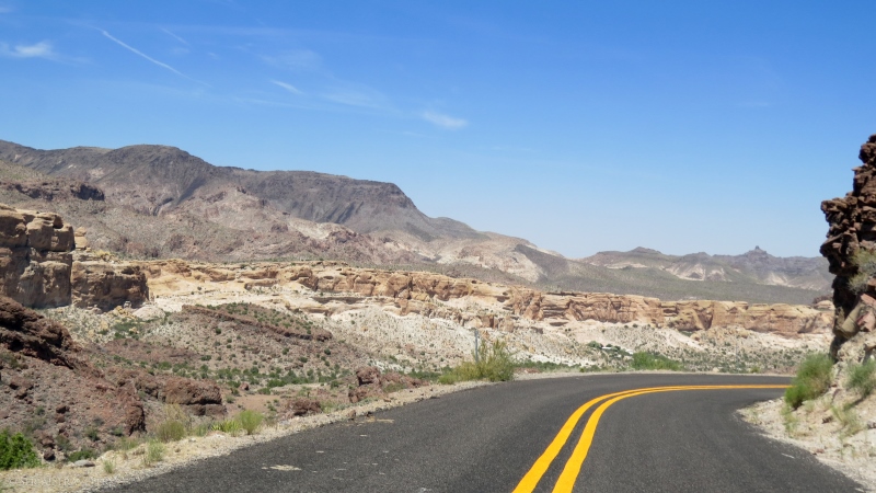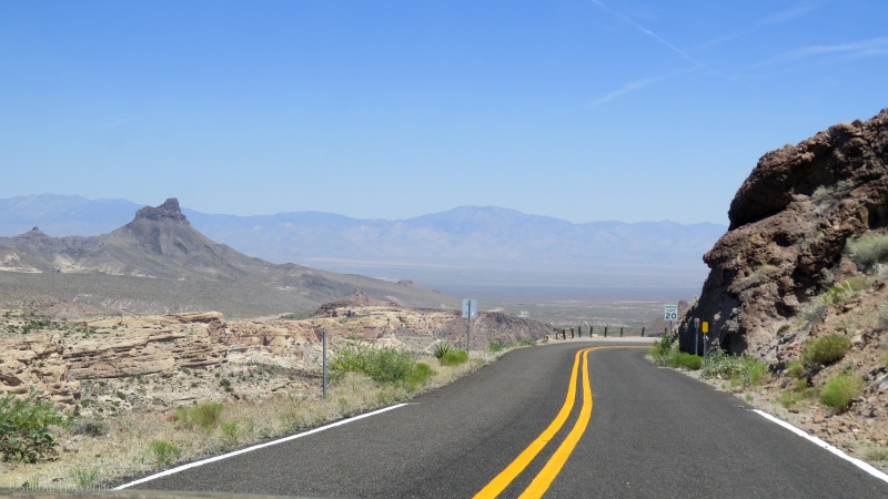 Nous mangerons un bout dans un restaurant d’Oatman, avant de reprendre la route en direction de Kingman vers 14H, en traversant l’un des plus beaux paysages de l’Ouest Américain 🙂 En effet, nous emprunterons l’Oatman Road County Highway 10 (qui n’est rien d’autre qu’une portion de la route 66), reliant Oatman à Kingman, via McConnico.