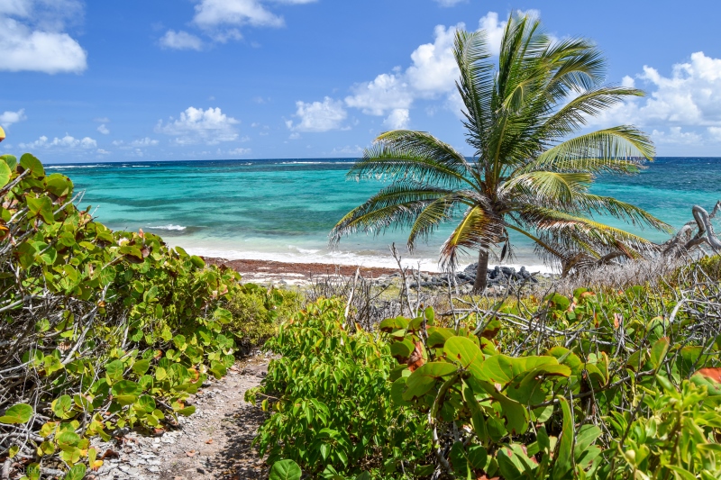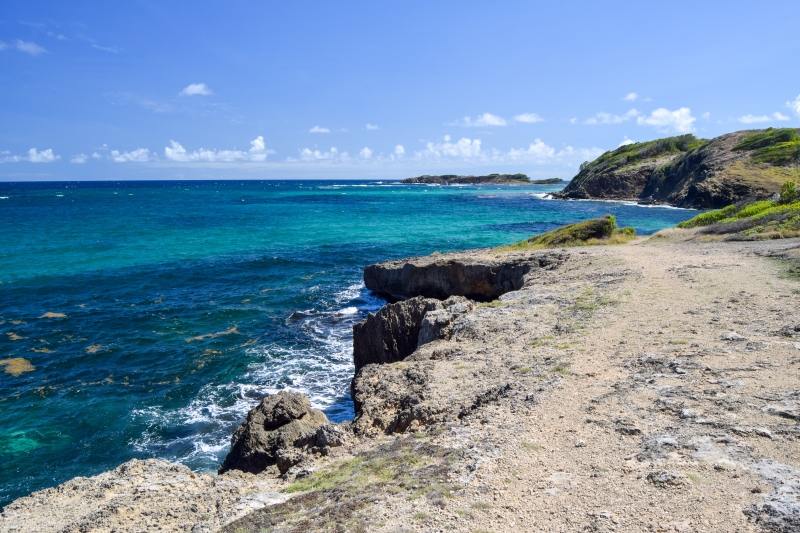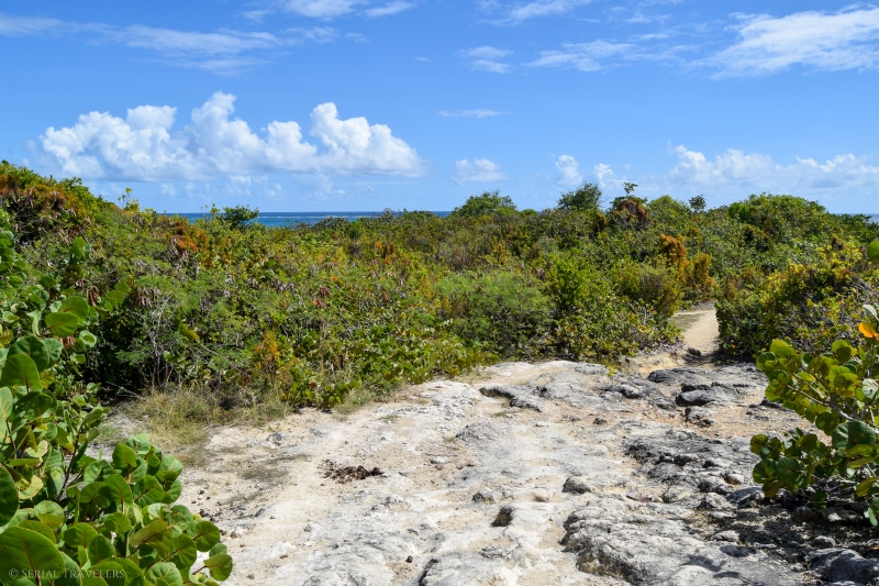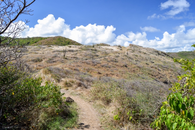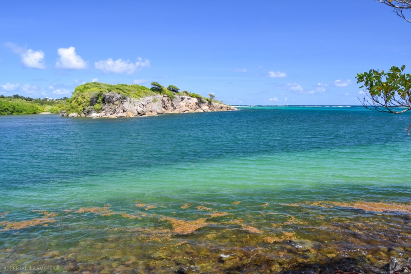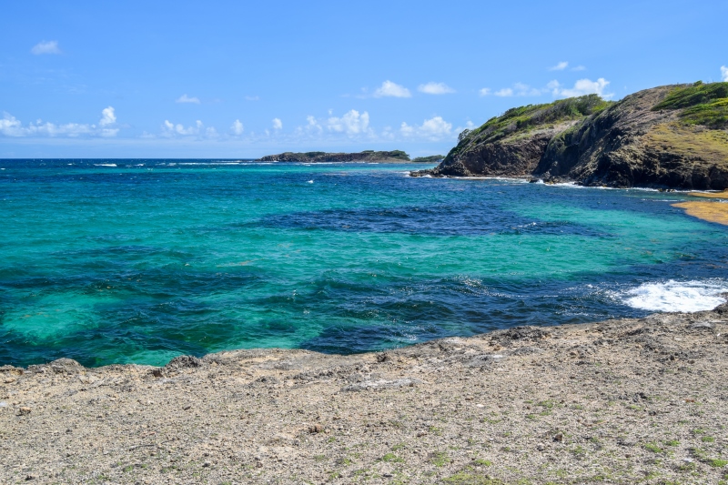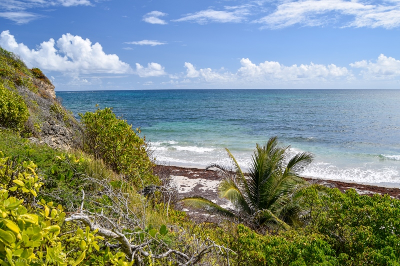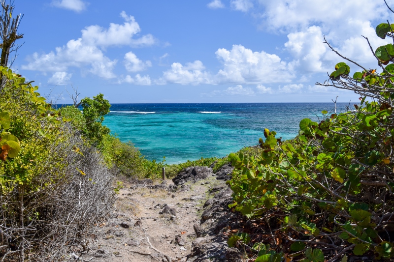 La portion du Trou Cadia, qui s’étend du cul-de-sac de Ferré jusqu’à la presqu’île du Cap Ferré est sûrement la plus sportive, car il y a des dénivelés importants avec peu d’ombre… Mais, cette section présente de superbes panoramas sur l’eau turquoise de la côte !