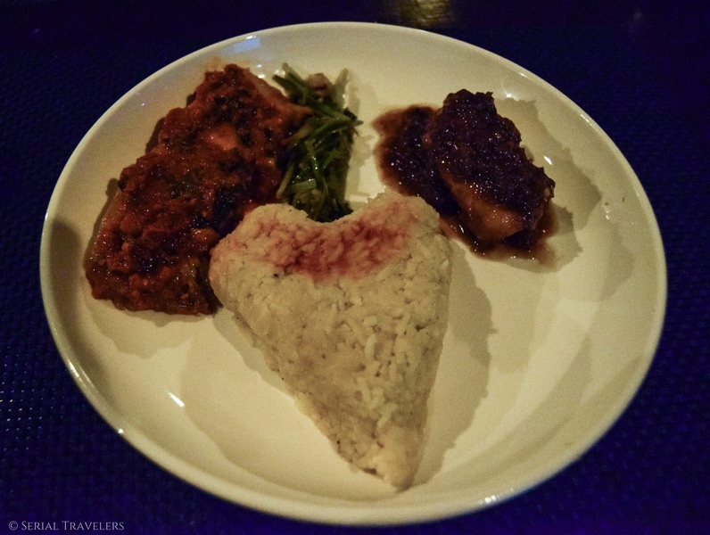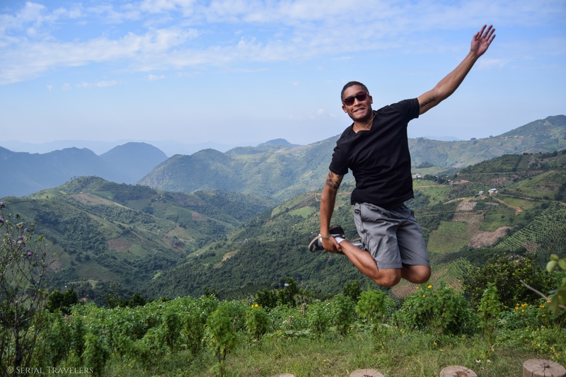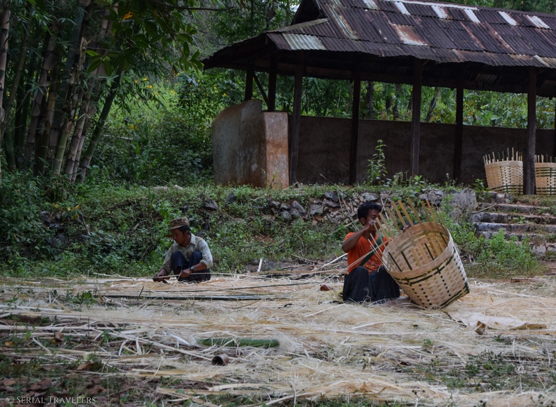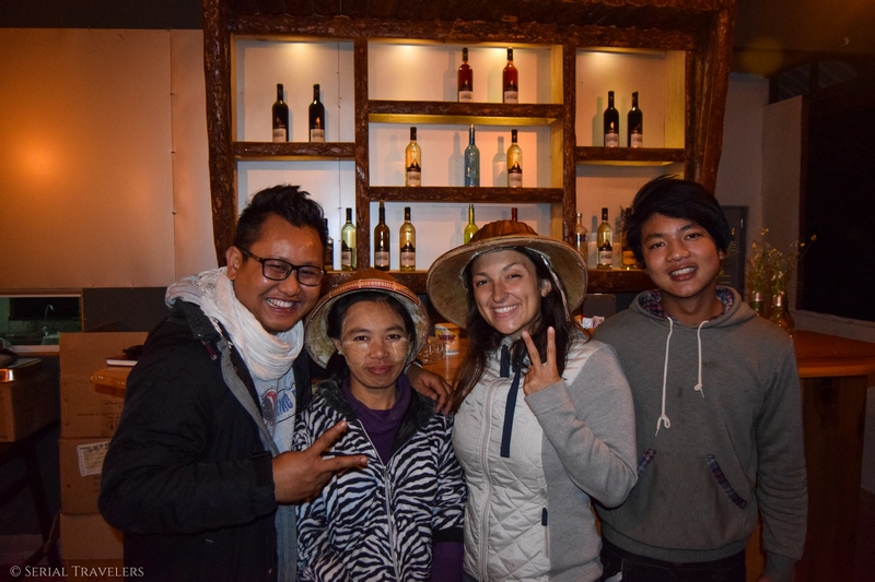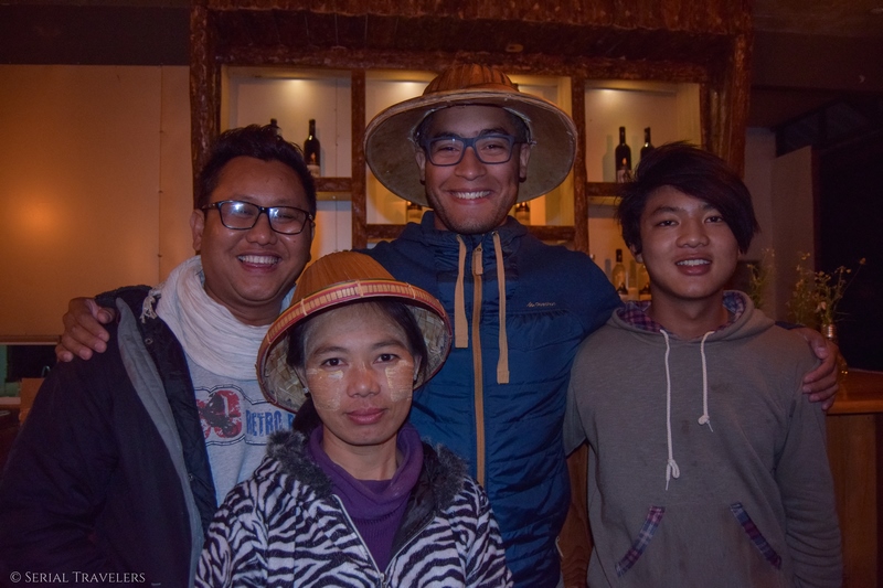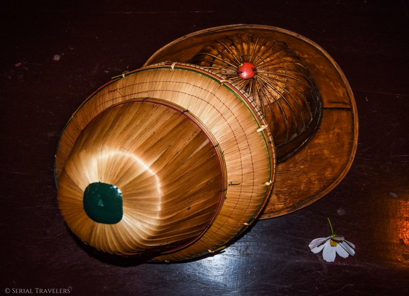 Nous avons donc dîné au restaurant de la guesthouse. Le menu est plus cher que la moyenne de la région mais les plats sont exceptionnels ! Il n’y a pas de Wifi, le staff vous met donc en partage de connexion avec un téléphone si nécessaire. Louis et son frère sont aux petits soins. Nous repartirons même avec deux chapeaux traditionnels en bambou.