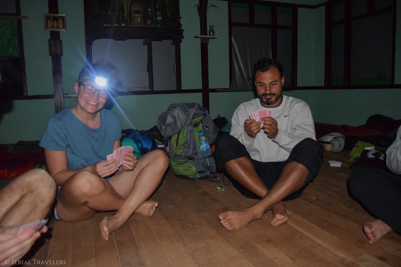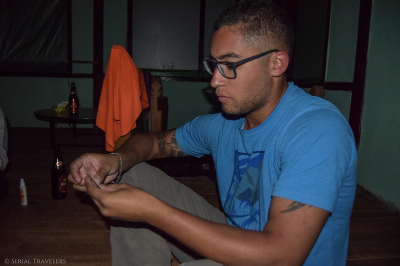 Une fois que la famille va dormir, nous entamons un jeu de cartes dont tout le monde connaît à peu près les règles. À peu près ça veut dire que nous mettons une heure à retrouver le vrai règlement. Note à nous-même : connaître toutes les règles d’au moins un jeu de cartes en voyage 🙂