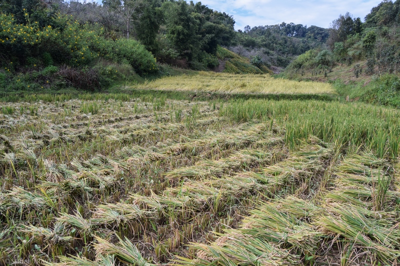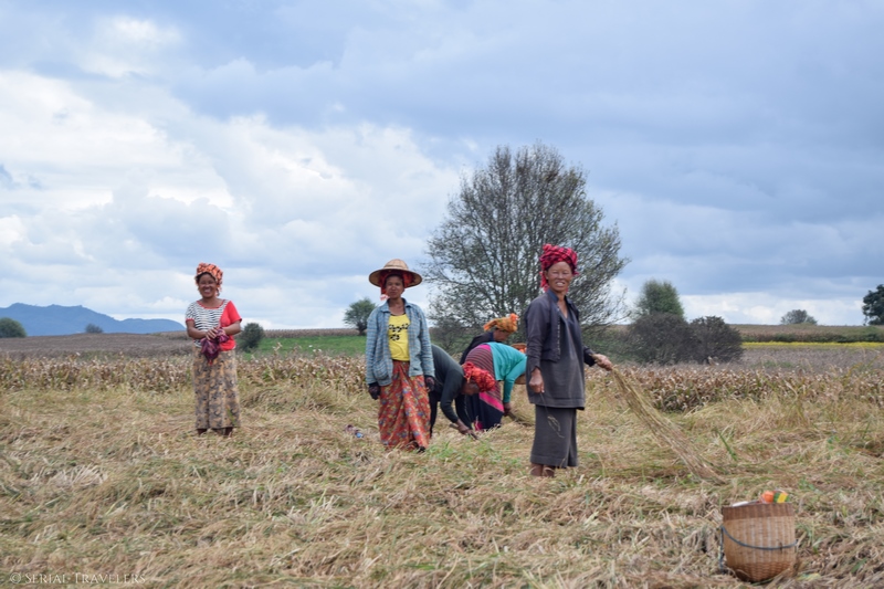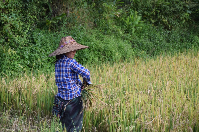 Nous allons à la rencontre des paysans au milieu de leurs champs, certains sont tout sourire et échangent avec notre guide et d’autres continuent de travailler.
