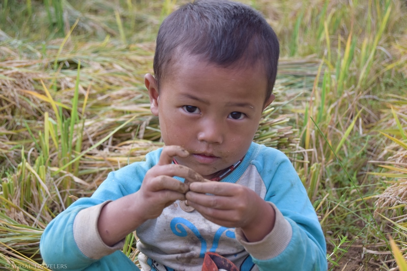 L’après-midi, la randonnée continue tranquillement entre montagnes, champs et rails… Ces enfants rentrent de l’école, chaque jour ils marchent 2 heures aller-retour !