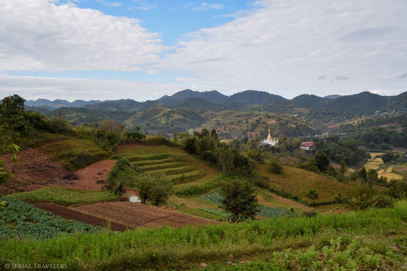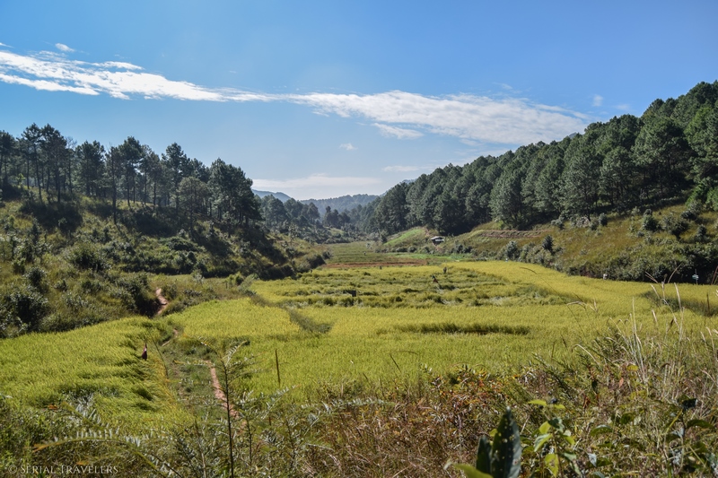 La dernière matinée, on grimpe un peu pendant une heure. Nous passons par un péage afin d’acheter les tickets pour le Lac Inle.