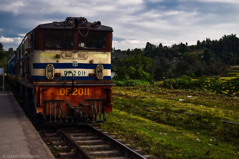 Après avoir marché une bonne heure sur les rails que l’on pense abandonnés, nous croisons un train.