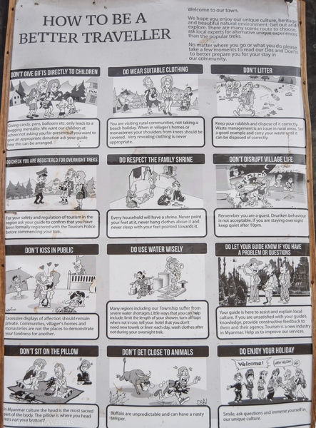 - Pensez à réserver un hôtel à Inle pour pouvoir communiquer le nom à l’avance à l’agence à Kalaw