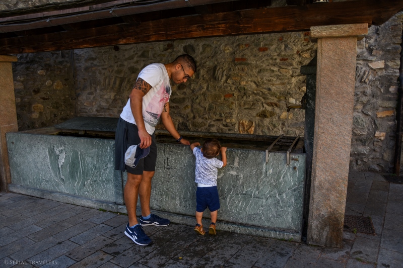 Dimanche 15 août 2021, nous nous réveillons tranquillement après une bonne nuit de sommeil, malgré la difficulté à endormir notre petit bonhomme la veille, Noah étant un peu perdu dans ce nouvel environnement… Suite à un petit-déjeuner bien copieux à l’hôtel, nous débarquons dans le centre-ville d’Aoste dès 9H, en nous garant au parking de la gare, situé en dehors de la ZTL (Zona a Traffico Limitato).