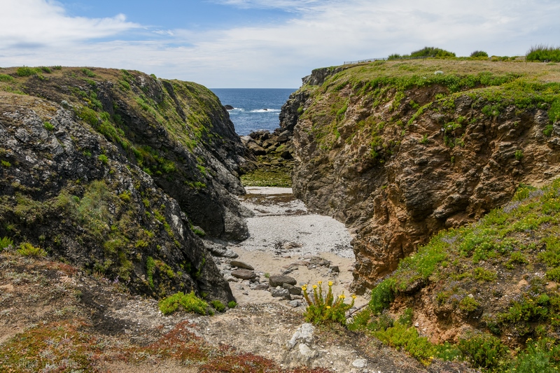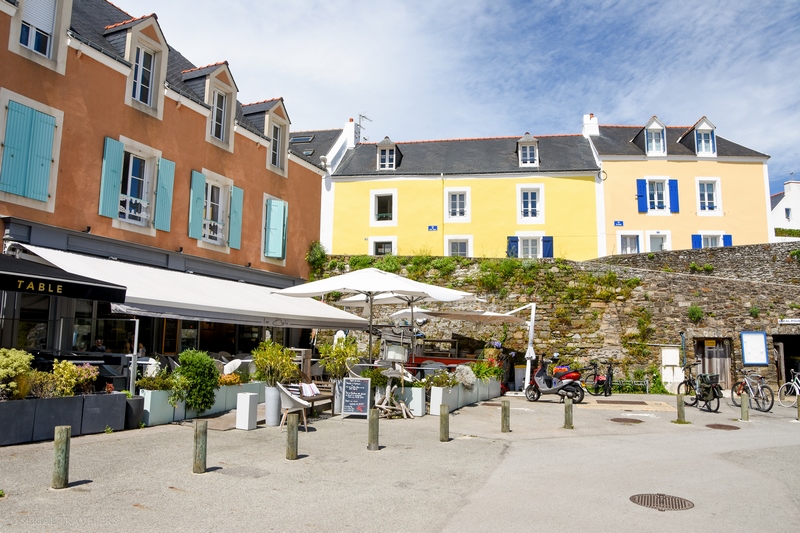 Vers 15H, nous arrivons garons la voiture sur le petit port de Sauzon. Sauzon constitue une véritable carte postale : on y trouve un petit port de pêche, de belles maisons colorées aux tons pastel ainsi qu’une balade sur le front de mer surplombant le ria, menant jusqu’à la mer. L’endroit invitant à la quiétude, nous prenons une verre et une bonne glace sur place, en déambulant dans les ruelles pendant près d’une heure et demie !