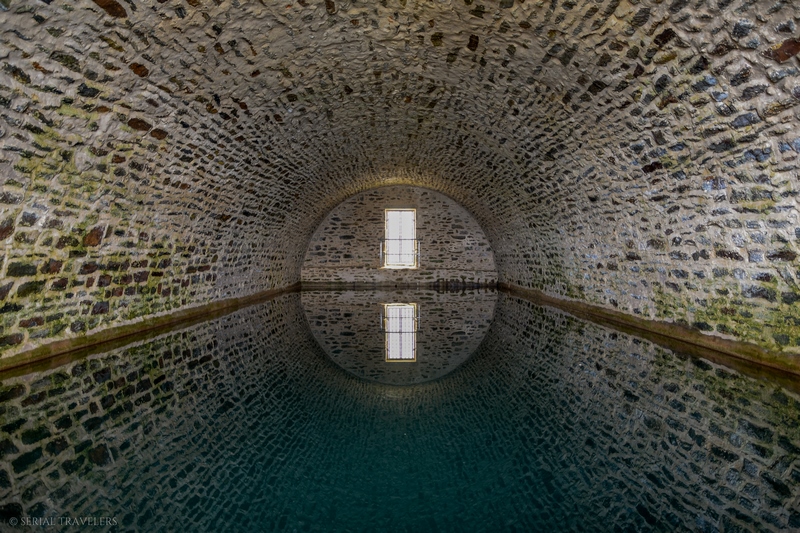 Ce monument historique, appelé également « Aiguade de Vauban », est localisé sur la côte Nord de Belle-Île entre Le Palais et Locmaria. Construit en 1696, le réservoir a pour but de recueillir les eaux d’une source proche, afin d’approvisionner les vaisseaux du Roi en eau potable. Sébastien Le Prestre de Vauban, dit « Vauban », (ingénieur & architecte militaire sous Louis XIV) semble être l’instigateur de ce projet, sans doute mûri lors de ses multiples séjours effectués sur l’île entre 1683 et 1689. D’une contenance de 850 m3, le réservoir mesure près de 23 m de long, 6 m de large et près de 6 m de profondeur et permettait d’alimenter en eau les chaloupes qui accostaient sur un quai en granit, en contrebas.