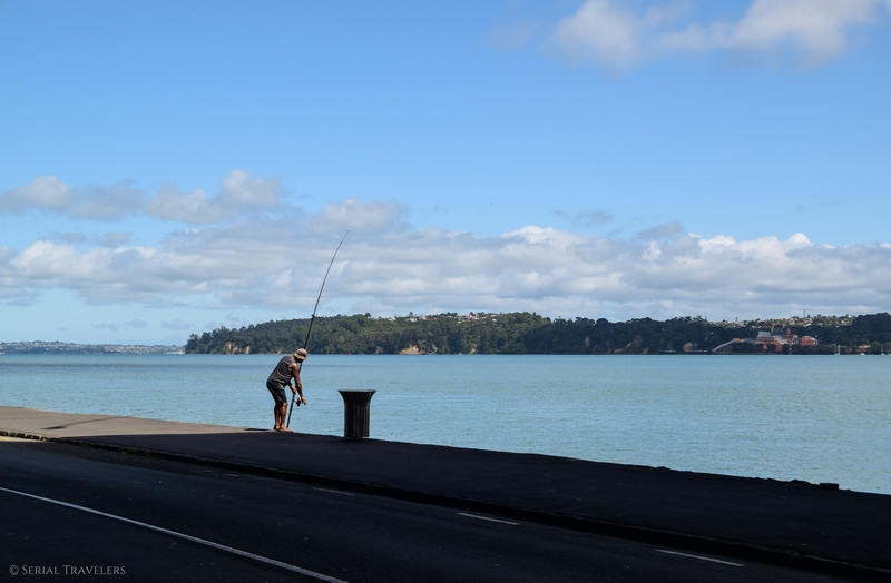Si le pont est célèbre, c’est la nature qui l’entoure qui nous émerveille. L’océan est d’un bleu incroyable et les îles au loin sont nombreuses. On passe un moment à regarder les mouettes, les goélands, un hydravion et des Maoris qui font du canoë 🙂 .