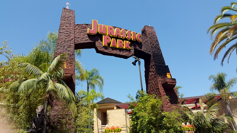Jurassic Park The Ride (Lower Lot) : il s’agit d’un tour dans un bateau calqué sur le film éponyme, au milieu des dinosaures et se terminant par une cascade de 25m de haut, attention ça mouille !