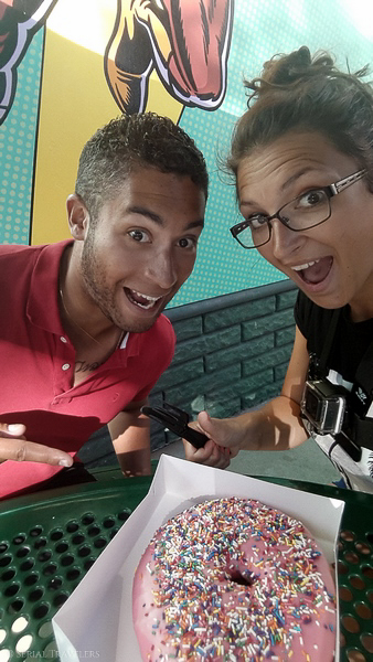 Sortis de Shrek 4D vers 17H30, nous profiterons de la proximité de Krustyland pour nous acheter un ENORME DONUT ! Depuis le début de la journée, on voyait les Américains nous narguer avec ça dans les mains, et on n’a pas pu y résister ! Serial astuce : comptez 5.50$ pour repartir avec ce délicieux mais bourratif donut tout droit sorti de l’univers des Simpson !
