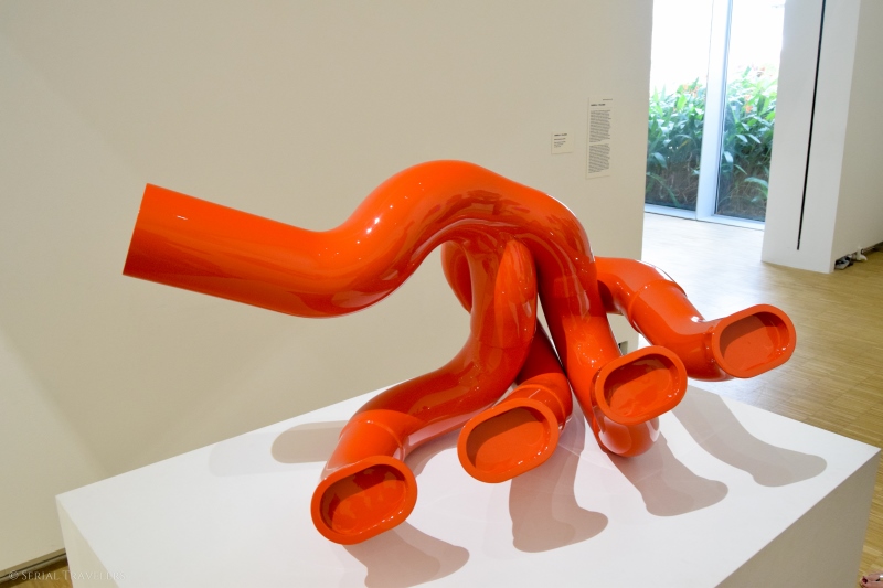 En 1986, GBH devient propriétaire de la marque Clément et crée la Fondation Clément la même année, promouvant le mécénat en faveur des arts et du patrimoine architectural de l’espace Caraïbe et d’ailleurs. Ainsi, dans cette partie, on trouve de nombreuses œuvres d’art, changeant au gré des collections ! Au départ, nous n’avions pas forcément beaucoup de sensibilité pour l’art moderne, mais nous avons eu la chance d’être accompagnés par une guide de la Fondation et avons adoré notre visite de cette galerie d’art vivante !