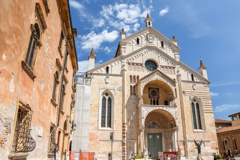 Santa Maria Matricolare (également connu comme le Duomo di Verona) est la seule cathédrale de Vérone, siège du diocèse de la ville. L’édifice, consacré à la Vierge Marie en 1187, fut construit en style roman sur les ruines de deux anciens édifices chrétiens primitifs. Nous nous contenterons uniquement de l’extérieur de la cathédrale. Parmi les nombreux édifices religieux à Vérone, plusieurs valent le coup d’œil comme l’église Sant’Anastasia, située non loin du Duomo di Verona.