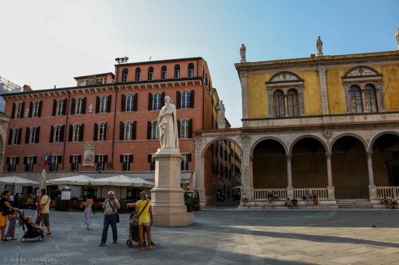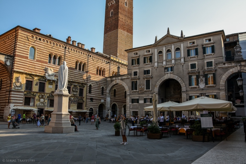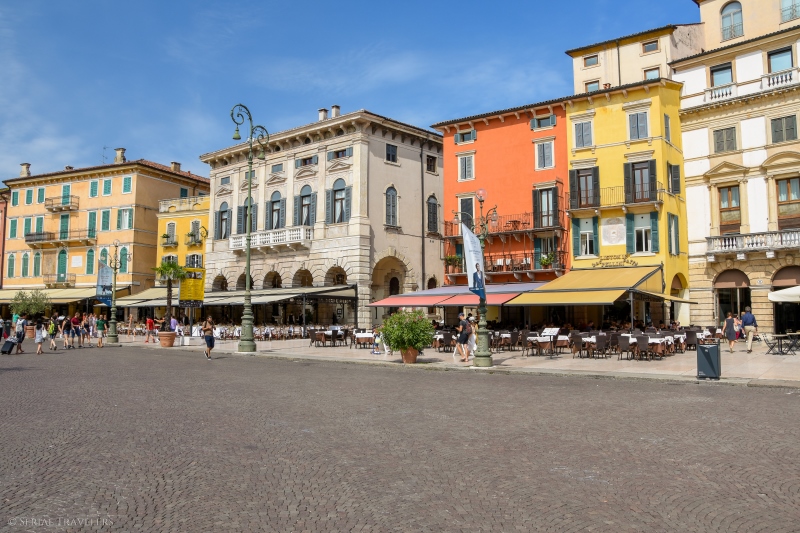 On y trouve les arènes au Nord-Est, le Palazzo Barbieri au Sud-Est, qui constitue dorénavant l’hôtel de ville (Comune di Verona) ainsi que le Palazzo Grand Guardia au Sud. Aussi, cette jolie place compte de nombreux cafés & restaurants. Nous profiterons de la beauté de l’endroit pour prendre un petit-déjeuner en terrasse et s’imprégner de l’ambiance de la ville, si spéciale !