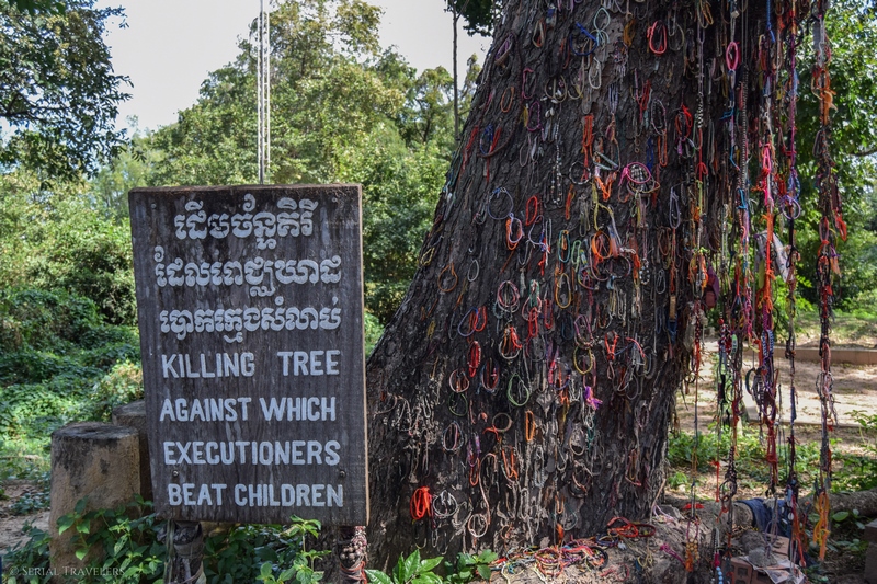 Vers la fin de la visite, on découvre l’endroit le plus terrifiant de Choeung Ek. Le « Killing Tree » est un arbre massif posé au bord d’un charnier qui a été mis à jour avec plus de 100 corps de femmes et d’enfants.
