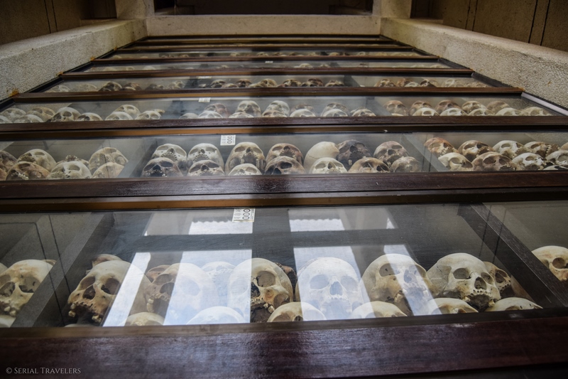 Quelques 86 charniers (ou fosses communes) sur 129 furent exhumés et permirent de mettre à jour des milliers d’ossements d’hommes, de femmes mais aussi d’enfants… Dans leur folie meurtrière, les Khmers Rouges avaient pour habitude de décimer des familles entières, pour éviter tout risque futur de vengeance.