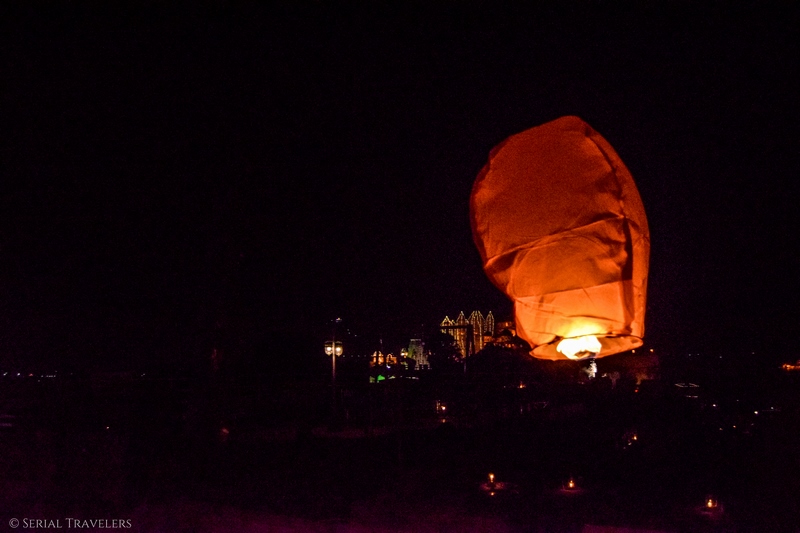 Nous assistons à un véritable défilé de feux d’artifice, de pétards et de lanternes durant plusieurs heures ! Ils sont très espacés dans le temps et n’avons pas l’effet « premier de l’an » avec tout qui « explose » en même temps.