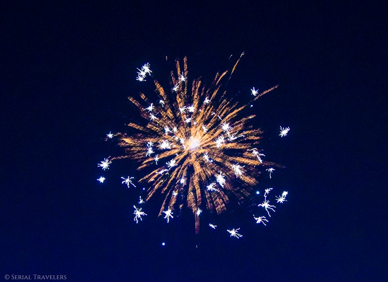 Dans les rues, quelques groupes de personnes défilent en famille mais il n’y a toujours pas foule ! Quand on redescend vers 23H, il n’y a presque que des enfants qui font exploser des centaines de pétards. Et pas des petits ! On ne peut pas rester à côté sans perdre un tympan.
