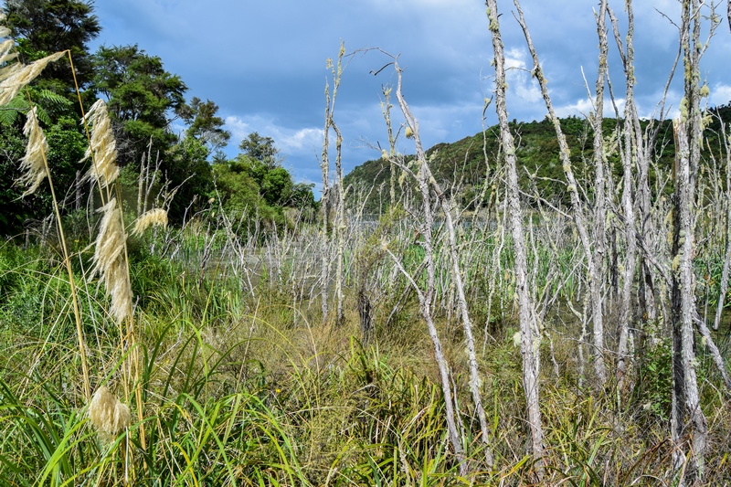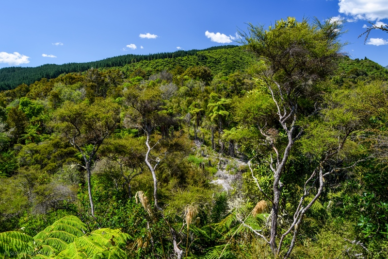 En plus d’être instructive, la randonnée de Waimangu permet d’apprécier la beauté intacte de la réserve. La marche démarre avec un panorama sur la vallée détruite le 10 juin 1886. C’est immense et saisissant !