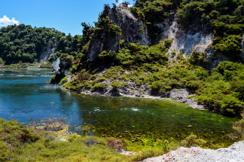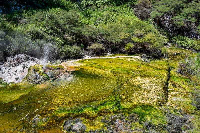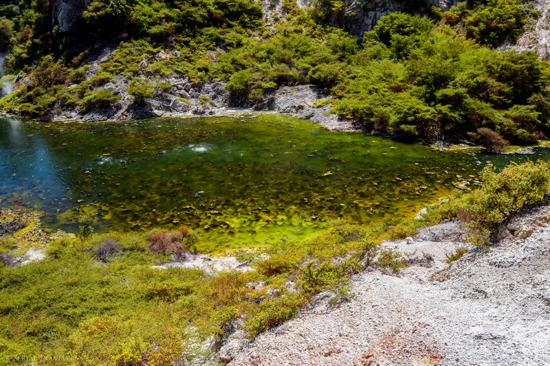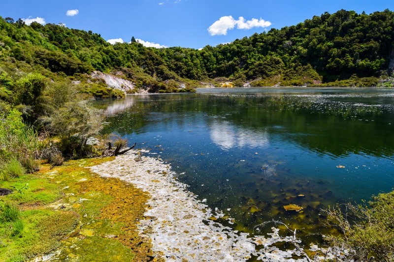 Une grande variété d’organismes adaptés à la chaleur ont élu domicile dans la vallée de Waimangu. La température moyenne des ruisseaux est de 50°C et certains lacs atteignent les 80°C !