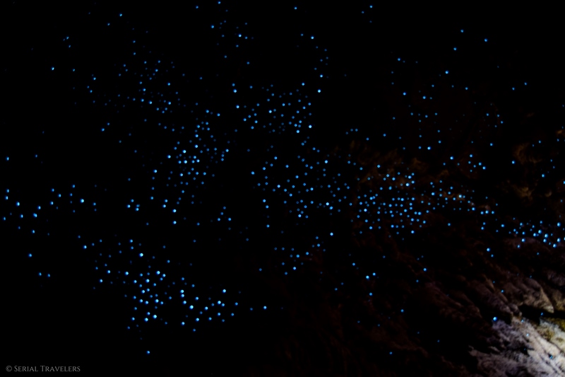 Les Waipu Caves, situées à 2H30 au Nord d’Auckland, sont des grottes où vivent des milliers de vers luisants (« glow worms » en anglais), diffusant une lumière bleue/verte dans l’obscurité. En Nouvelle-Zélande, il existe une multitude d’endroits où observer les glow worms et le site le plus connu est celui de Waitomo, situé lui aussi sur l’Île du Nord. Cependant, contrairement aux Waipu Caves, dont l’entrée est totalement gratuite, l’entrée aux grottes de Waitomo est payante et le site, transformé en attraction ultra touristique, est bondé de monde !