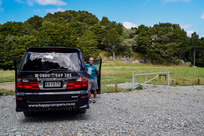 Jeudi 25 janvier 2018, nous récupérons notre van après une superbe journée passée à Auckland. Notre camper van va être notre maison pour les trois semaines à venir. Finis les sacs à dos et les restos, place au camping et au réchaud ! En plus de conduire un véhicule plus large, nous devons rouler à gauche avec le volant à droite… Après six mois de scooter en Asie ça change radicalement mais on s’y fait assez facilement.