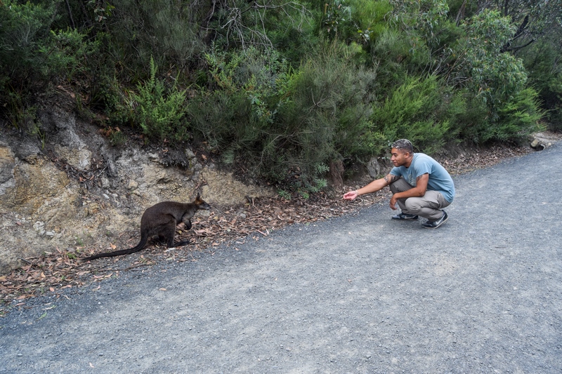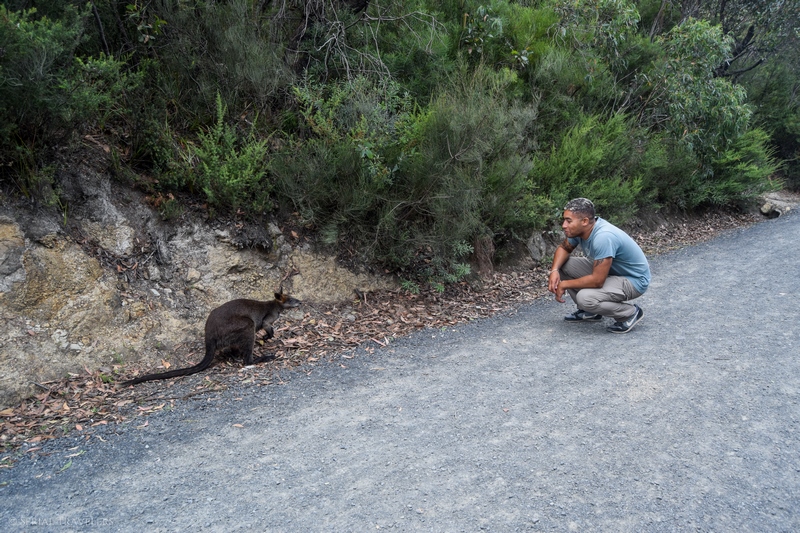 D’ailleurs, sur la route pour sortir du parc, nous aurons la première mauvaise surprise du séjour en évitant de justesse un wallaby suicidaire, qui traversa la route à quelques centimètres du pare-choc ! Et ce, malgré notre vitesse réduite et les coups de klaxon répétés à intervalles réguliers. Heureusement, plus de peur que de mal pour Thomas qui a réussi à éviter l’animal en mettant un coup de volant ! On ne le répétera jamais assez, mais au crépuscule, redoublez de vigilance pour éviter les kangourous et autres wallabies traversant les routes !