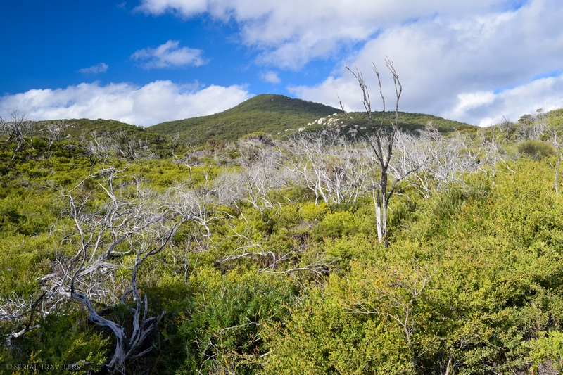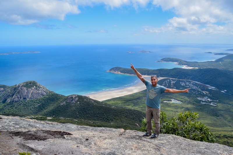 Après avoir mangé notre barbecue improvisé, nous déciderons de tenter l’ascension du Mount Oberon, qui offre un panorama magnifique au prix d’une ascension de 3,5 km sur un chemin de terre ombragé. La dernière partie, un peu plus abrupte, consiste à grimper une série d’escaliers métalliques, puis des marches creusées dans la roche, avant d’arriver au sommet. Le Mount Oberon est le point le plus élevé de la péninsule de Wilson et du parc national de Wilson’s Promontory.