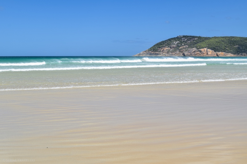 Après avoir fait un tour au visitor center et avoir appris qu’on ne pourrait pas dormir dans le parc (emplacements payants et chers 🙁 ), nous nous sommes tout naturellement dirigés vers la plage de Norman Beach. Cette première plage est en effet située juste à côté de Tidal River et atteignable à pied 🙂