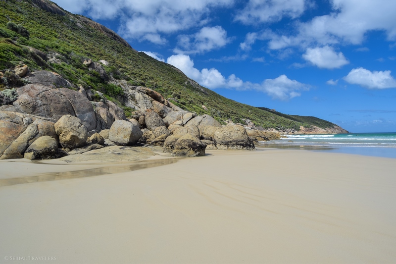 Wilson’s Promontory est un parc national du Victoria, et il s’agit même du parc national situé le plus au Sud de l’Australie continentale ! Le parc s’étire sur une superficie de 50 460 hectares et recouvre la majeure partie de la péninsule du même nom, entourée d’eau par trois côtés. Situé à 215 km à l’Est de Melbourne, le parc de Wilson’s Promontory protège des plages sauvages, des forêts tempérées, quelques sommets ennuagés ainsi que quelques îles au large des côtes. Enfin, compte-tenu de la situation géographique du parc, un phare historique a été installé en 1859 à l’extrémité Sud du Prom pour éclairer l’océan austral et les eaux tumultueuses du détroit de Bass.