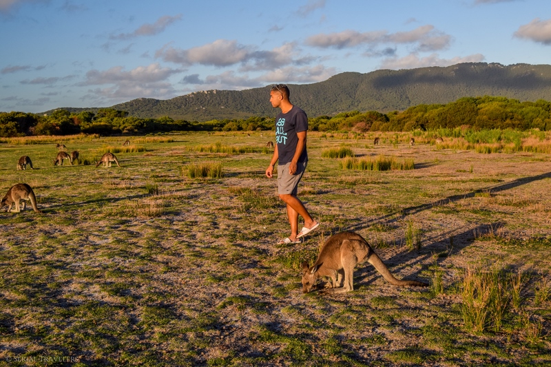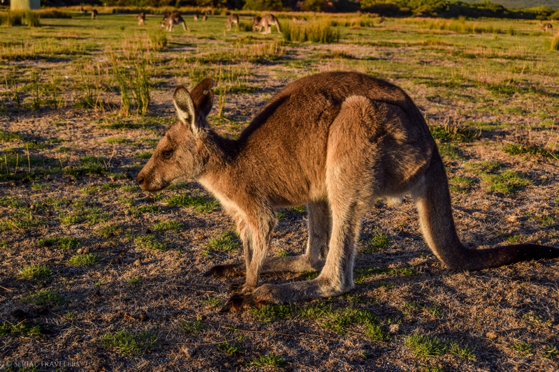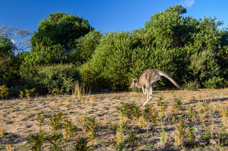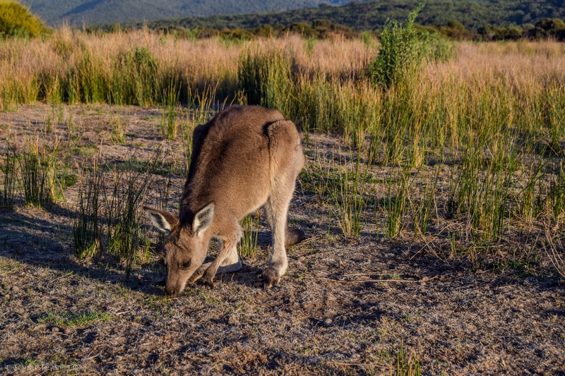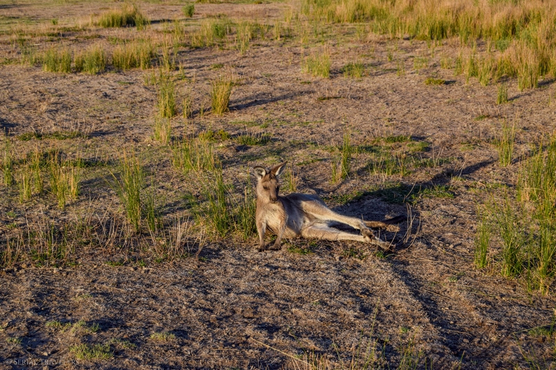 Au bout du chemin, nous tomberons nez-à-nez avec une colonie de 50 kangourous gris et essaieront de nous approcher d’un jeune, allongé au calme, comme si de rien était ! Pendant près de 15 minutes, ce petit bonhomme se laissera approcher petit à petit et prendra la pose devant notre objectif, pour notre plus grand bonheur 🙂